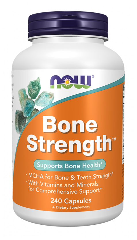 NOW Bone Strength - это комплексный продукт для поддержки костной системы, включающий MCHA, а также магний, витамины C и D, которые способствуют синтезу и укреплению костной ткани. MCHA в продукте получают исключительно из австралийского крупного рогатого скота.