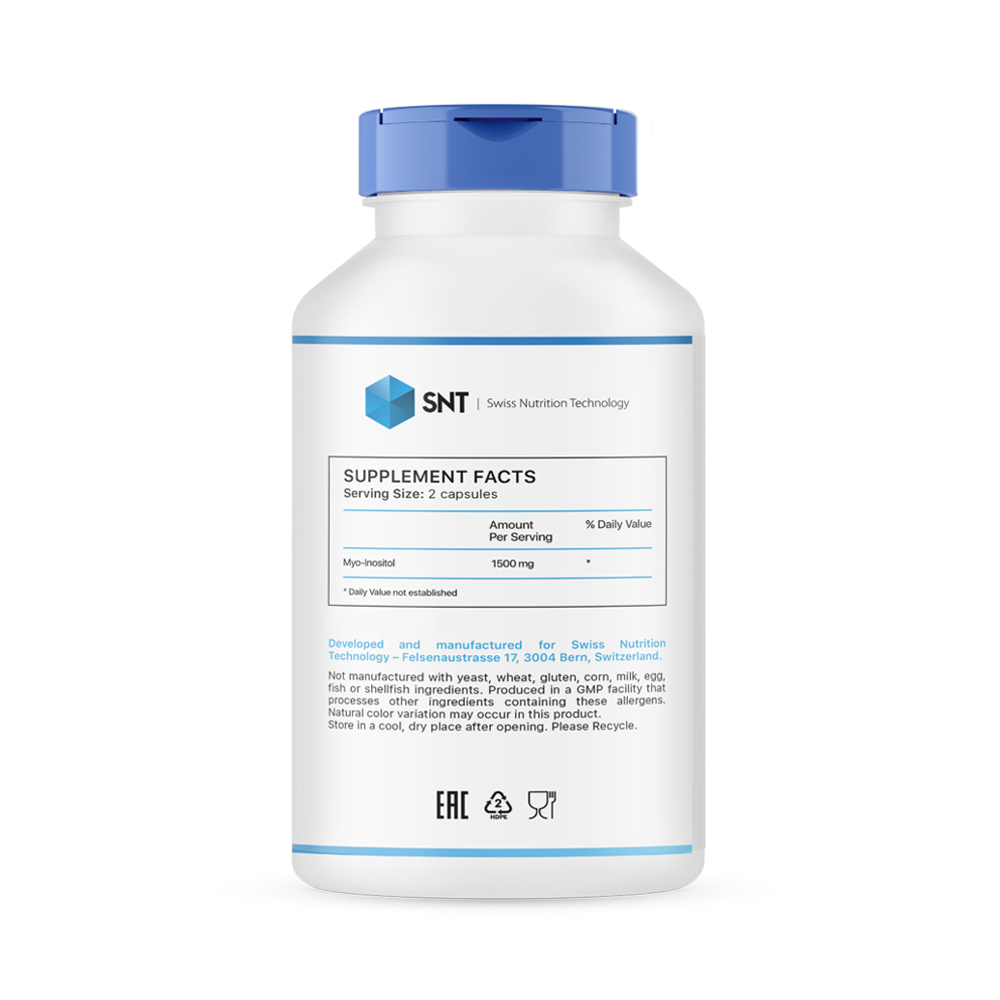 • поддержание нервной системы в тонусе: мио-инозитол способствует снижению уровня стресса, поднимает настроение и содействует психическому благополучию. Это особенно важно для поддержания эмоционального равновесия и обеспечения стабильности психического состояния.