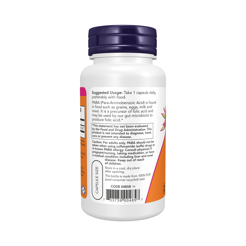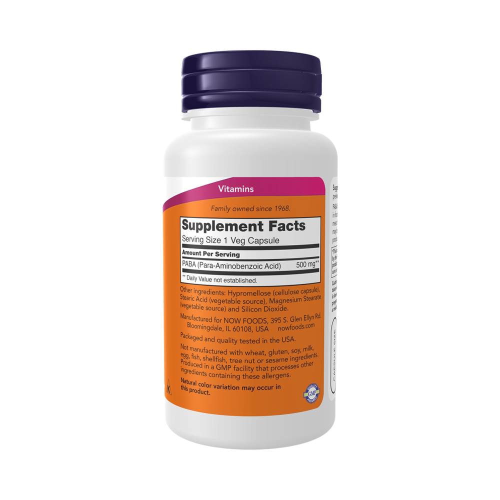 NOW Парааминобензойная кислота 500 мг, 100 капсул